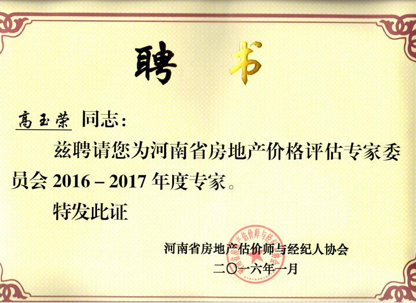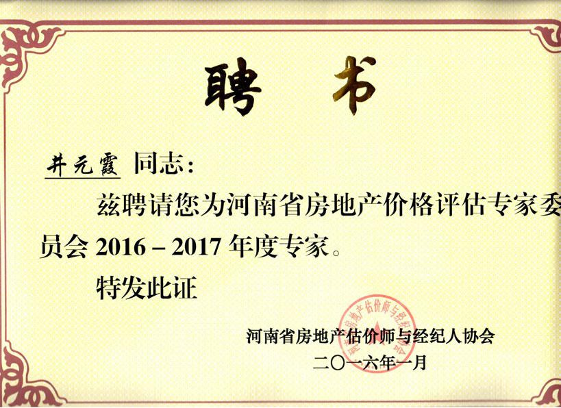 河南省房地產業協會估價經紀專